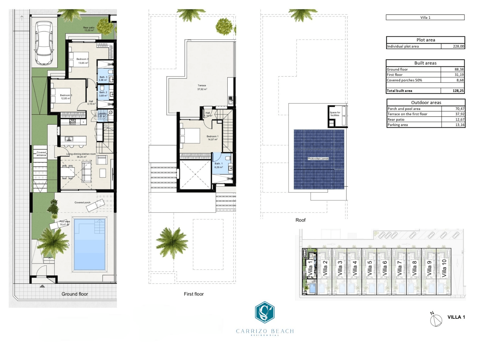 Villa 1 – 3 bedrooms / 3 bathrooms – 399,900€ completion December 2026
