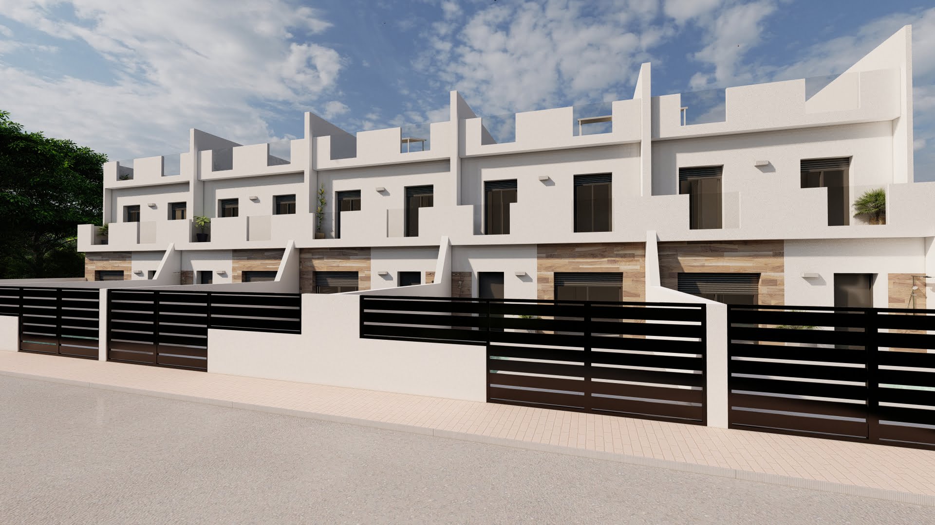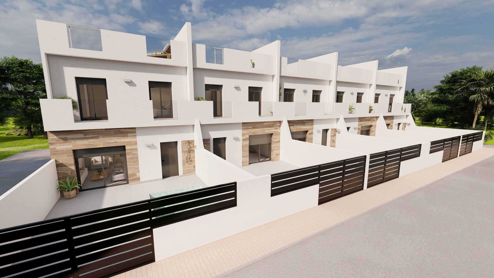 A lovely development of 5 modern off plan townhouses tucked away in the agricultural village of Dolores de Pacheco, Murcia. Located 4 km from the local sandy beaches and warm waters of the Mar Menor plus the vibrant town of Los Alcazares. This is the best of Spanish living in a traditional working village that also offers many golf courses in the surrounding area for the golfer.
