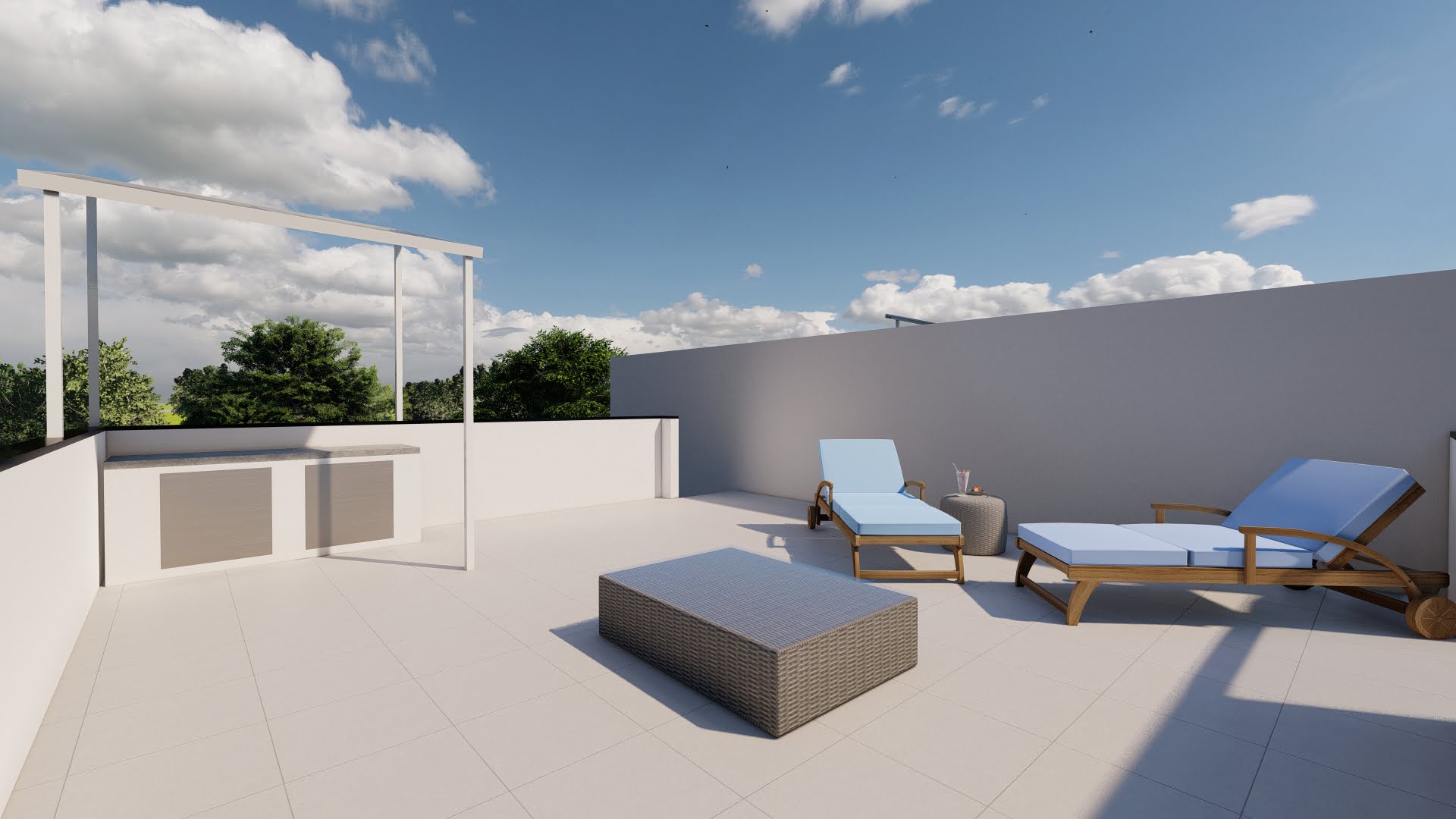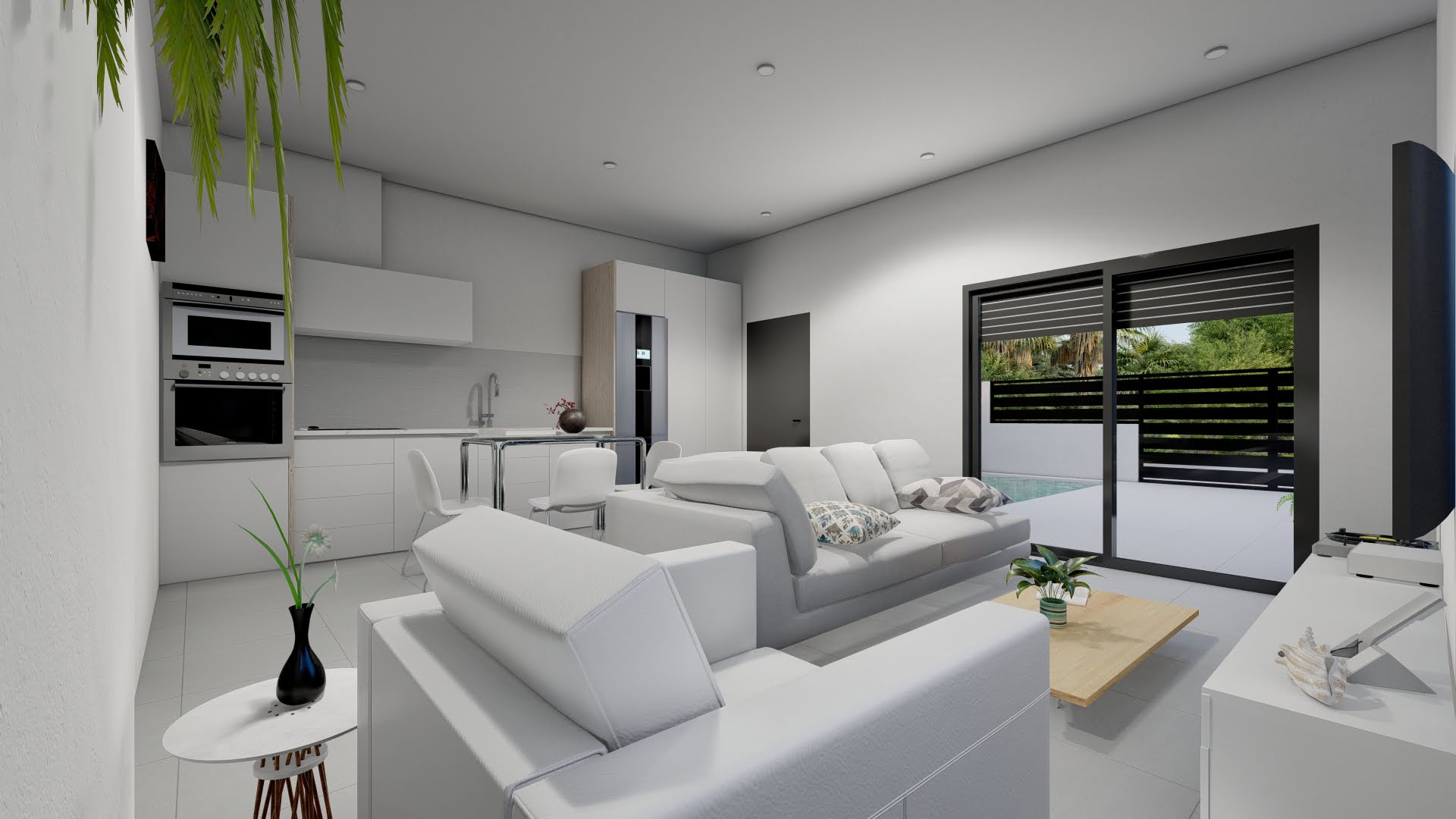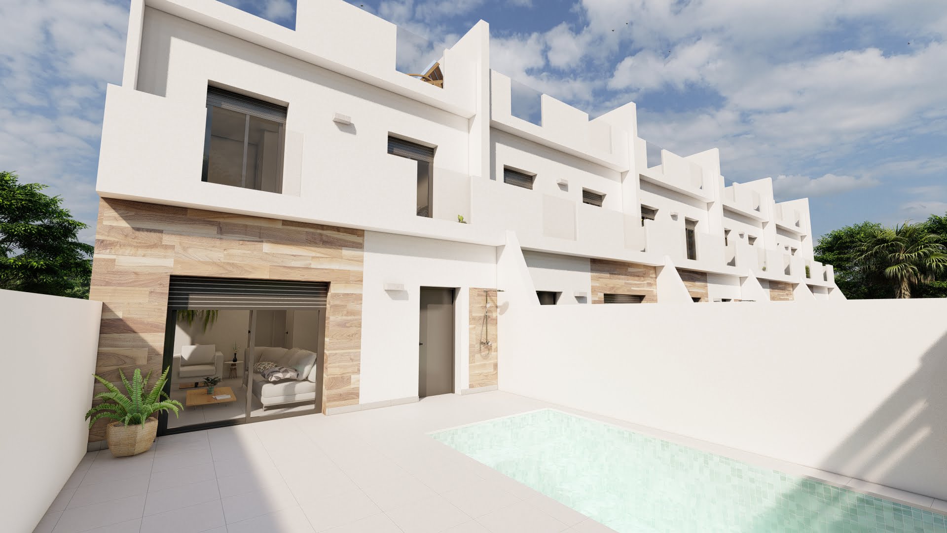 Townhouses offer a modern design with 3 bedrooms, 2 bathrooms, roof solarium, patio, two terraces and private swimming pool.