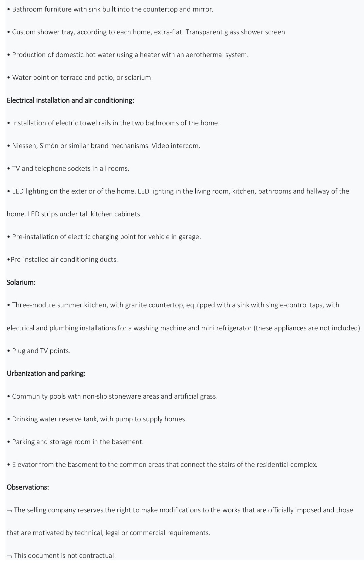 - Solarium with Summer kitchen, with pre-installation for electric appliances.