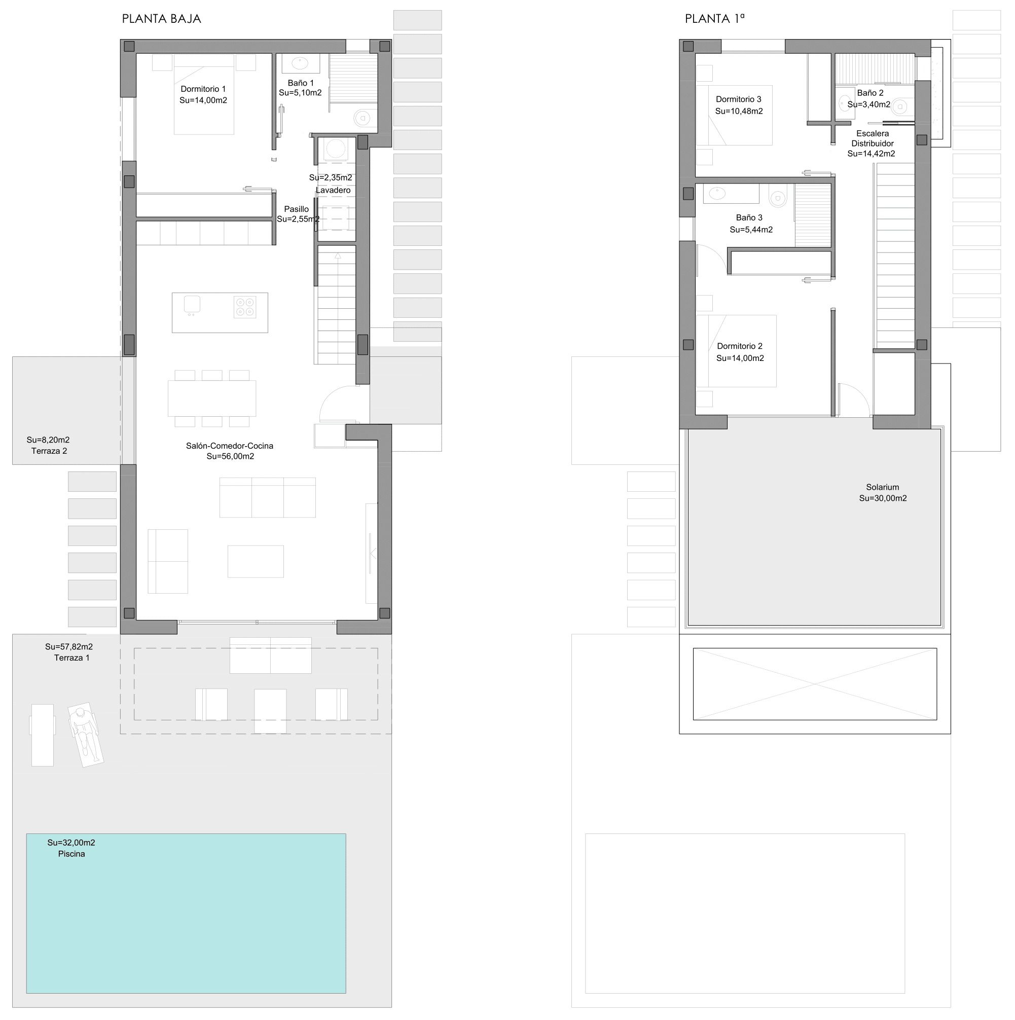 Spacious new build detached villas offering a choice of 3 bedrooms, 3/2.5 bathrooms with sun terrace and private swimming pool. Generous plot sizes 301 – 383 m² with villa builds of 142 & 157m² conveniently located close to La Finca and La Marquesa golf courses. Great location with views of the Torrevieja & La Mata Salt Lake plus the local cafes, bars and restaurants are just a short walk away. The lovely sandy beaches of Guardamar are only a 10 minute drive with Alicante Airport (30 minutes) and Murcia International Airport (50 minutes) both within an easy drive.