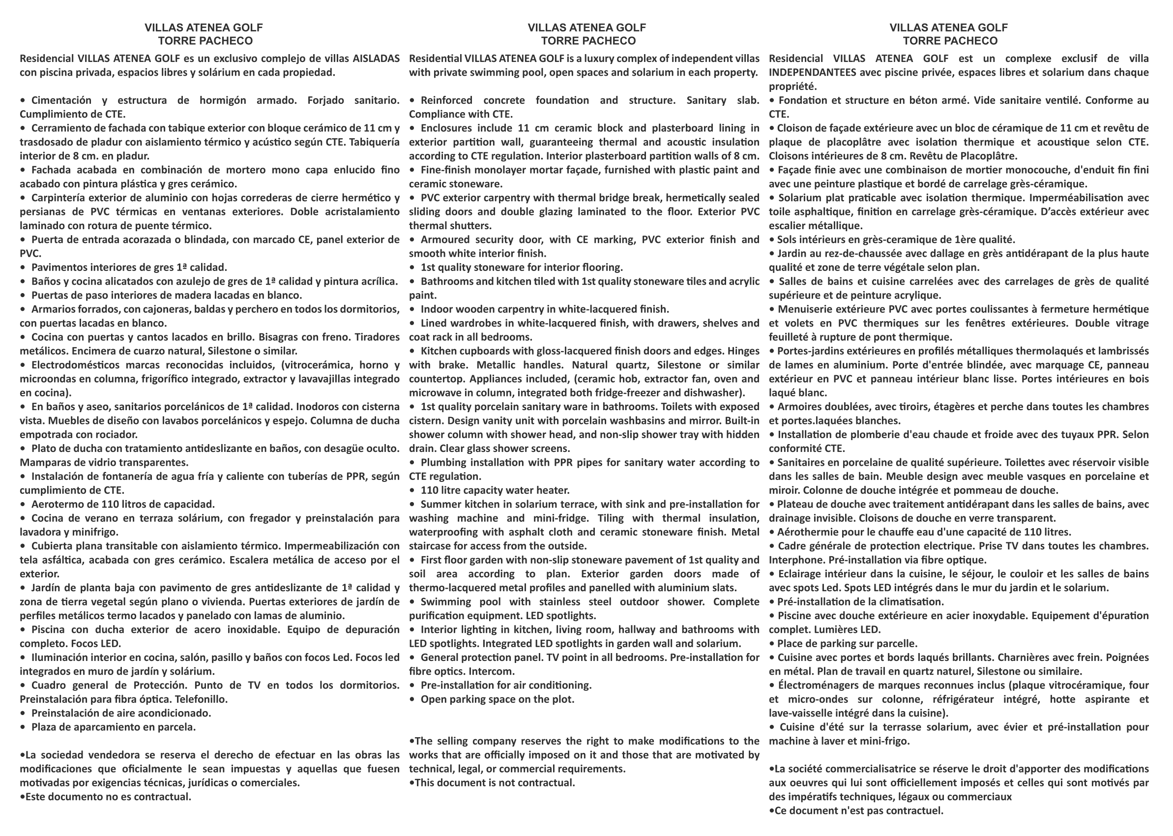 Residential VILLAS ATENEA GOLF is a luxury complex of independent one level villas with private swimming pool, open spaces and solarium in each property.