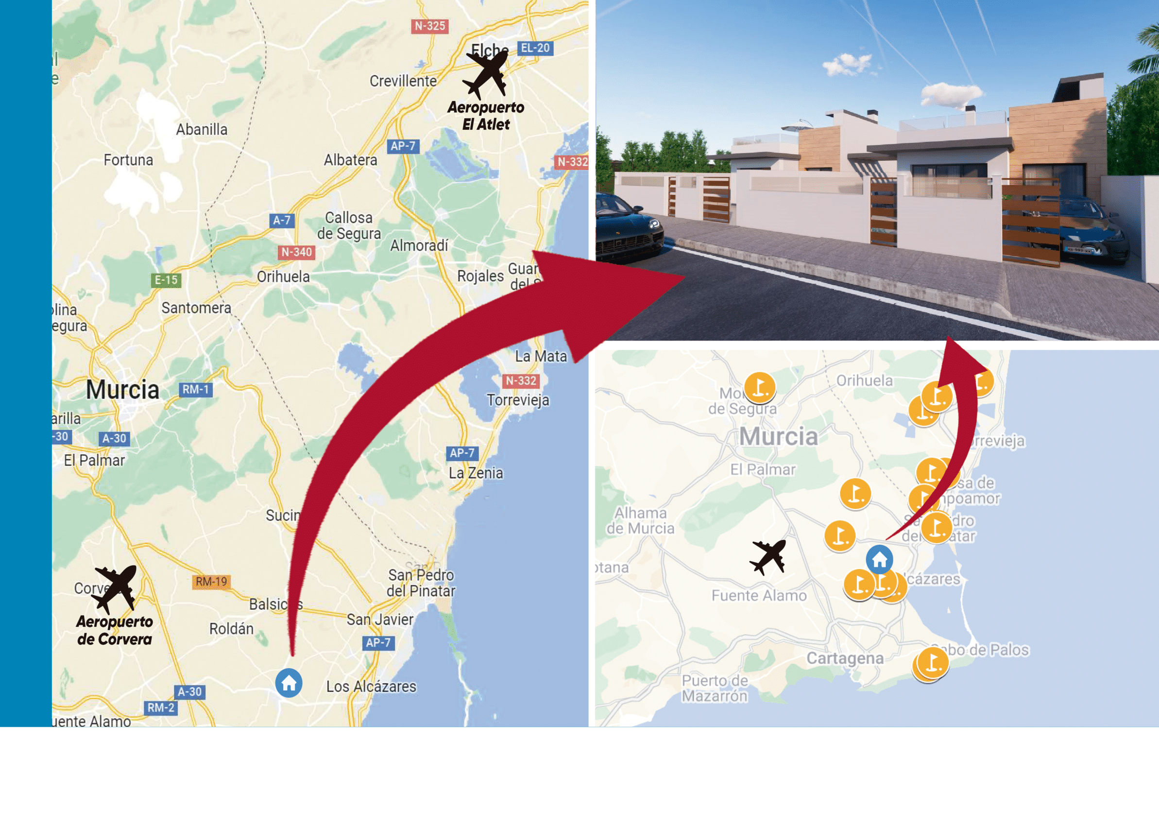 The development is located in Torre Pacheco (Murcia), 20 min. far to the beach, surrounded by all services, parks, sports facilities and several Golf Courses.