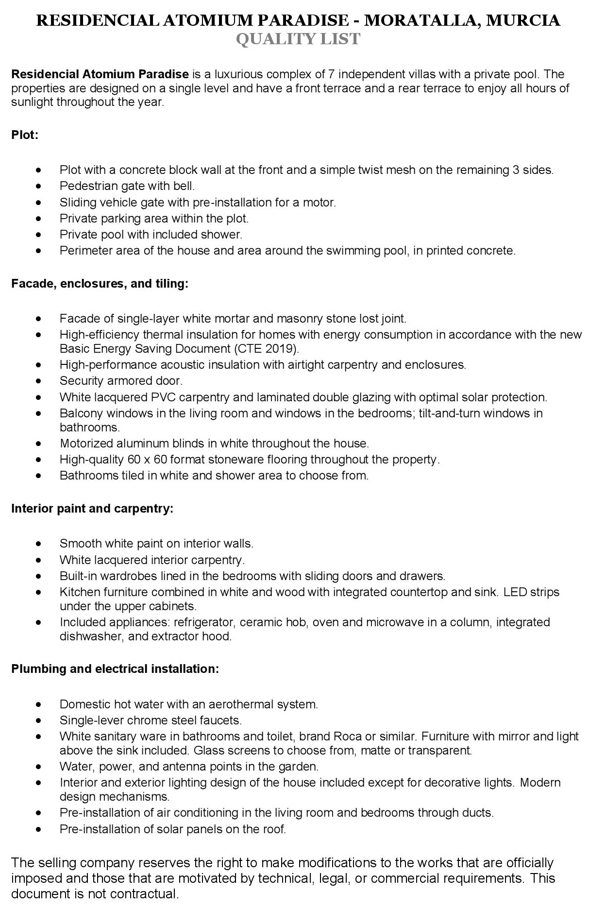 Residencial Atomium Paradise Villas is a new development of 7 luxury villas on large individual plots of 750 M2 that include a private swimming pool and terraced area.