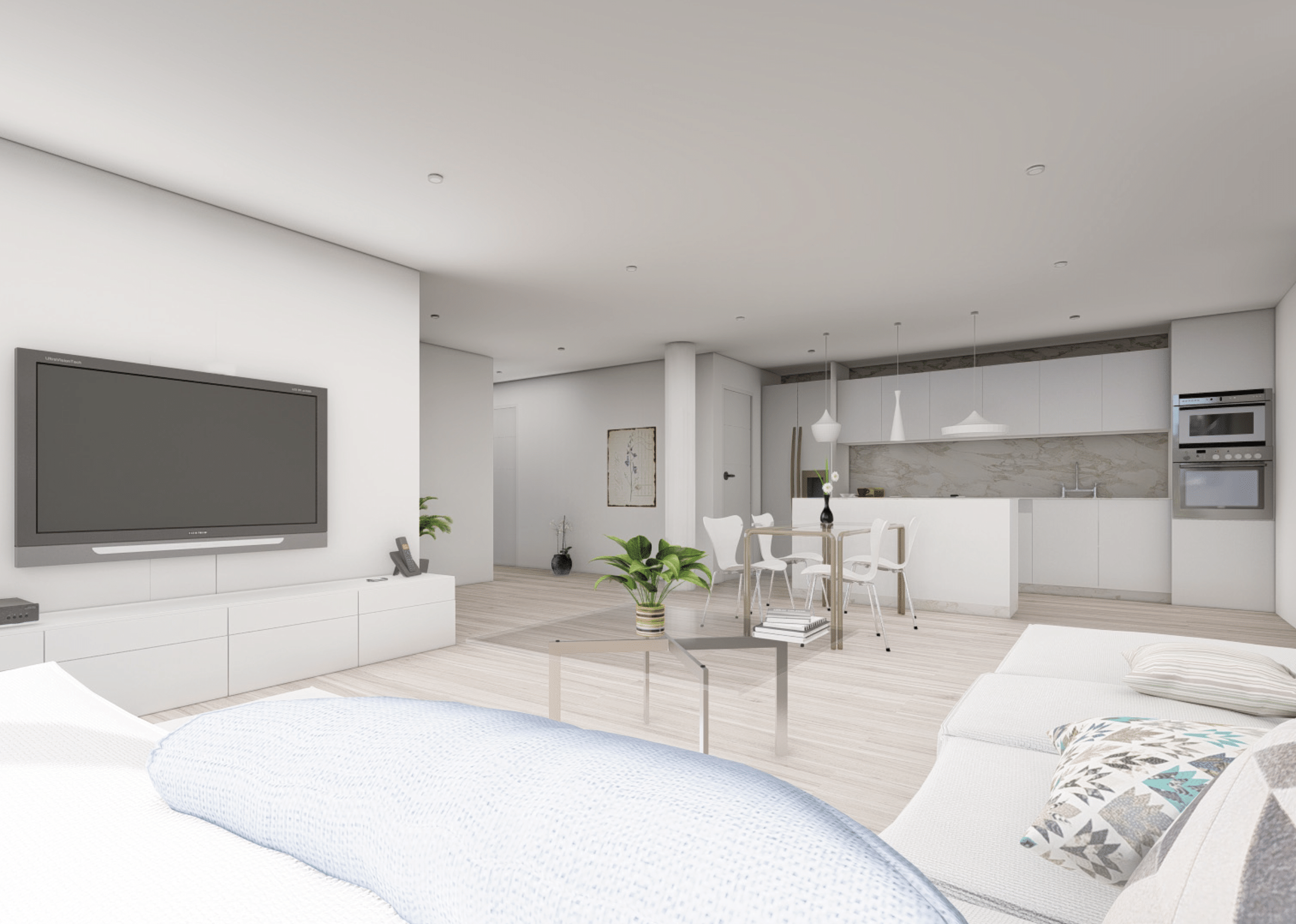 Each property has 3 bedrooms, 2 bathrooms and a toilet, plus a very disserable dressing room in the master bedroom. The properties have been designed on one level, with a contemporary style and an open planned concept, comprising a fully fitted kitchen and a lounge-dining room.