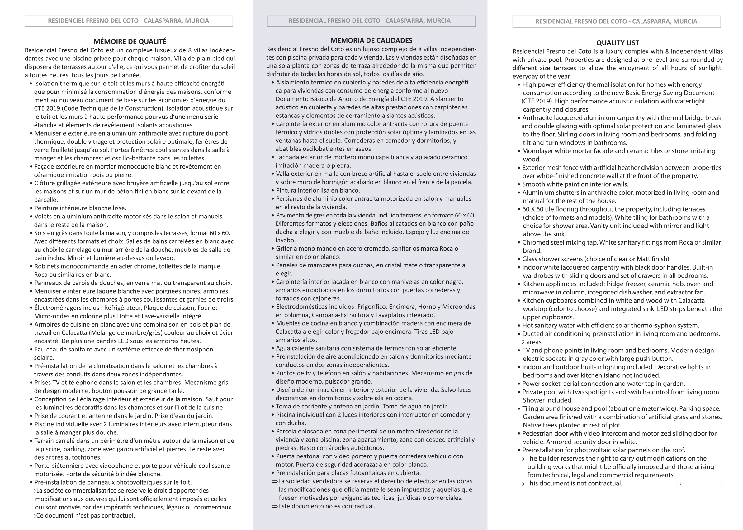 Residencial Fresno del Coto is a luxury complex of 8 independent villas with large private swimming pool and parking space on the plot. These properties have different terraced areas around them, allowing you to enjoy all hours of sunshine every day of the year.